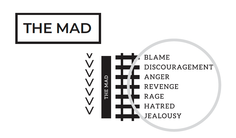 Blame, discouragement, anger, revenge, rage, hatred, jealousy